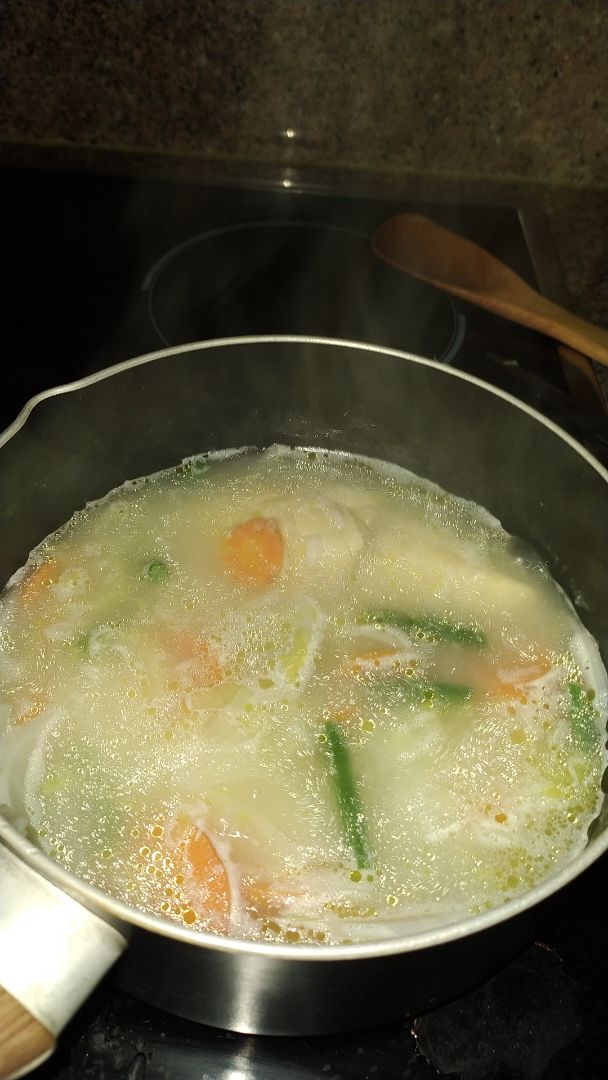 Cuando la pechuga leve unos minutos, añadir las verduras a cocer