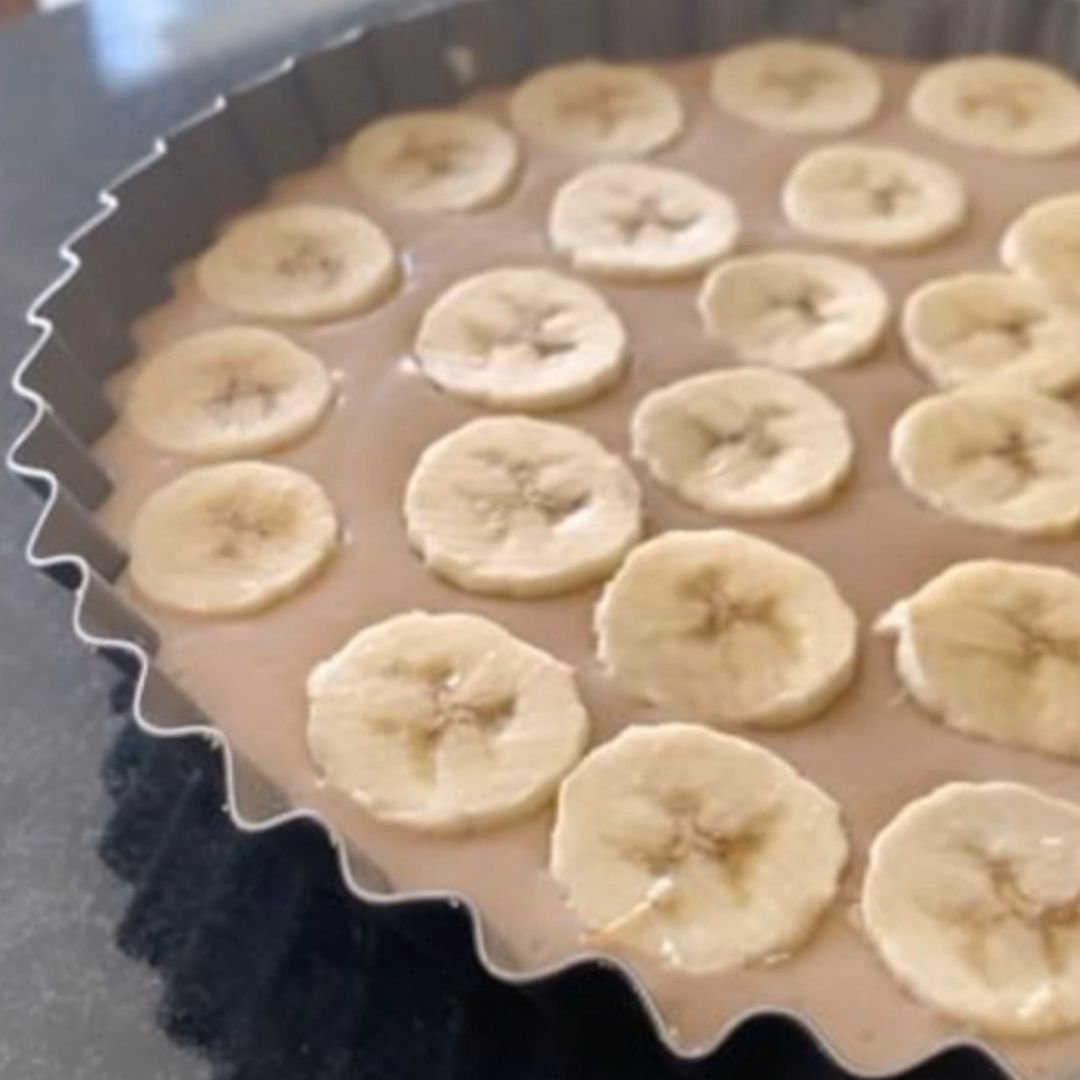 Disporre nello stampo sopra la base e mettere sopra le fette di banana. Conservare in frigorifero per almeno 30 minuti prima di mangiare.