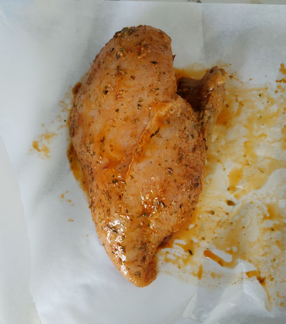 Se meten las pechugas enteras en la mezcla y se dejan reposar.