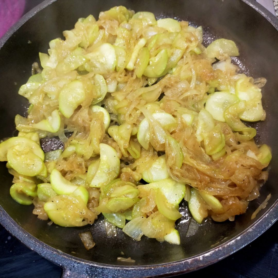Rehoga el calabacín con la cebolla hasta que esté bien pochado.