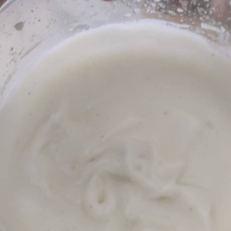 Batir la patata con el queso batido, sal, pimienta y aceite al gusto. Recomiendo no mucho aceite para no dejarle demasiado sabor a este.