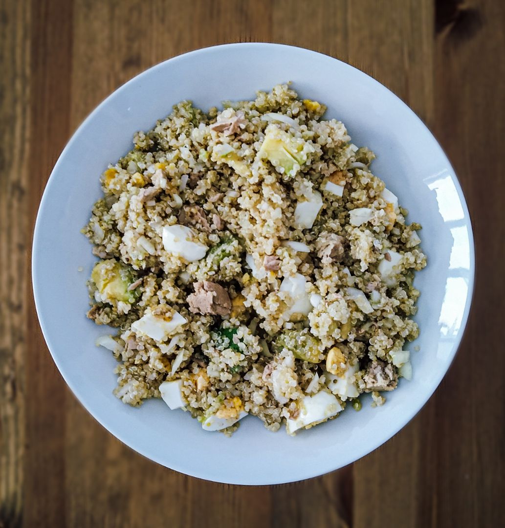Quinoa con avocado, tonno e uova.